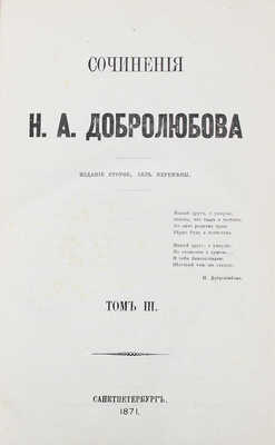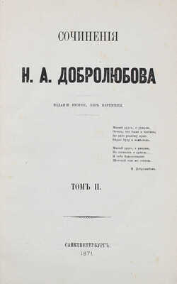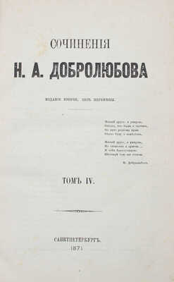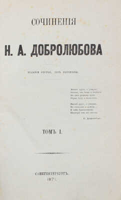 [Собрание В.Г. Лидина]. Добролюбов Н.А. Сочинения / Изд. 2-е, без перемены. В 4 т. Т. 1−4. СПб.: Типография Н. Неклюдова, 1871.