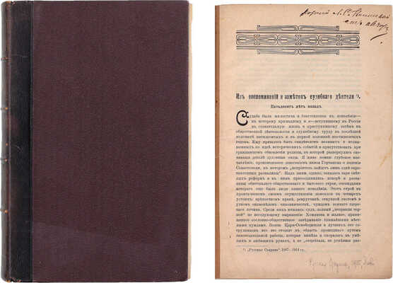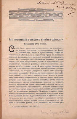 2. [Кони А.Ф., автограф]. Кони А.Ф. Из воспоминаний и заметок судебного деятеля. Пятьдесят лет назад / Русская старина. [Пг.], [1915].