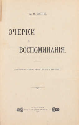 1. Кони А.Ф. Очерки и воспоминания. (Публичные чтения, речи, статьи и заметки). СПб.: Тип. А.С. Суворина, 1906.